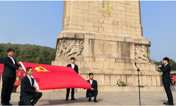 于淮海战役烈士纪念塔开展“英烈记我心,使命扛我肩”祭英烈暨预备党员宣誓活动。江苏省土木类高校党建联盟的领导老师、学院党委书记马占国、学生党支部委员、学院全体预备党员共计百余人参加此次活动。活动由党委副书记李智主持。