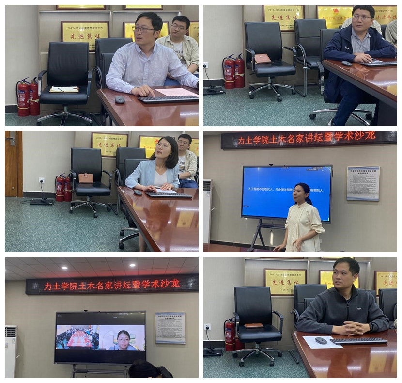 会上,乔亚宁、安丰华、李雪薇、许娜、谷甜甜、郭缙六位老师分别作《城市道路雨洪韧性研究》《沿空留巷工作面采空区瓦斯安全工程管理优化》《地铁全生命周期数智化安全管理研究》《大语言模型在土木工程领域的研究与应用》《智慧城市评价及其时空分异分析》《GPT支持下的城市群交通基础设施联通度预测与提升研究》的学术报告。