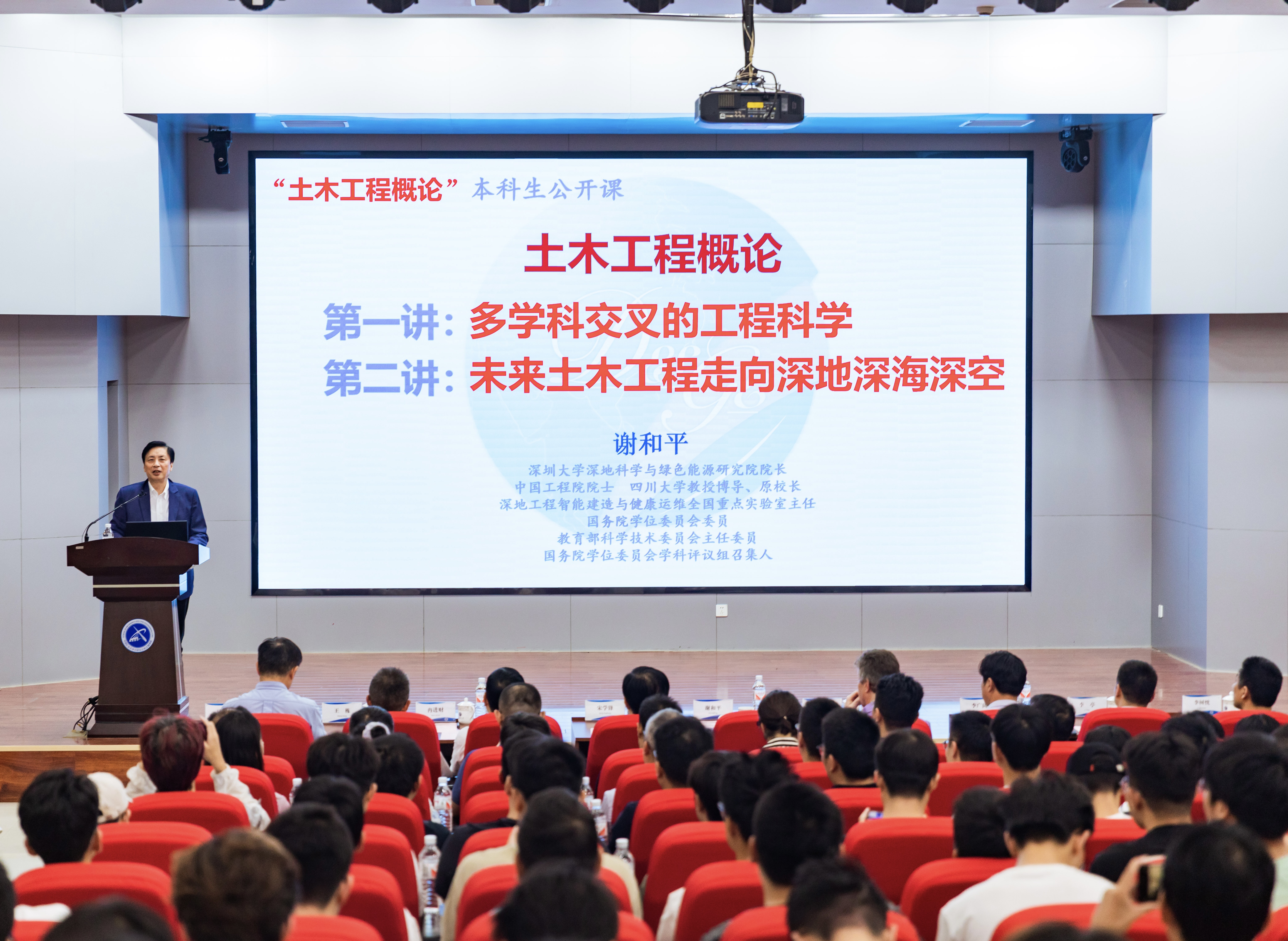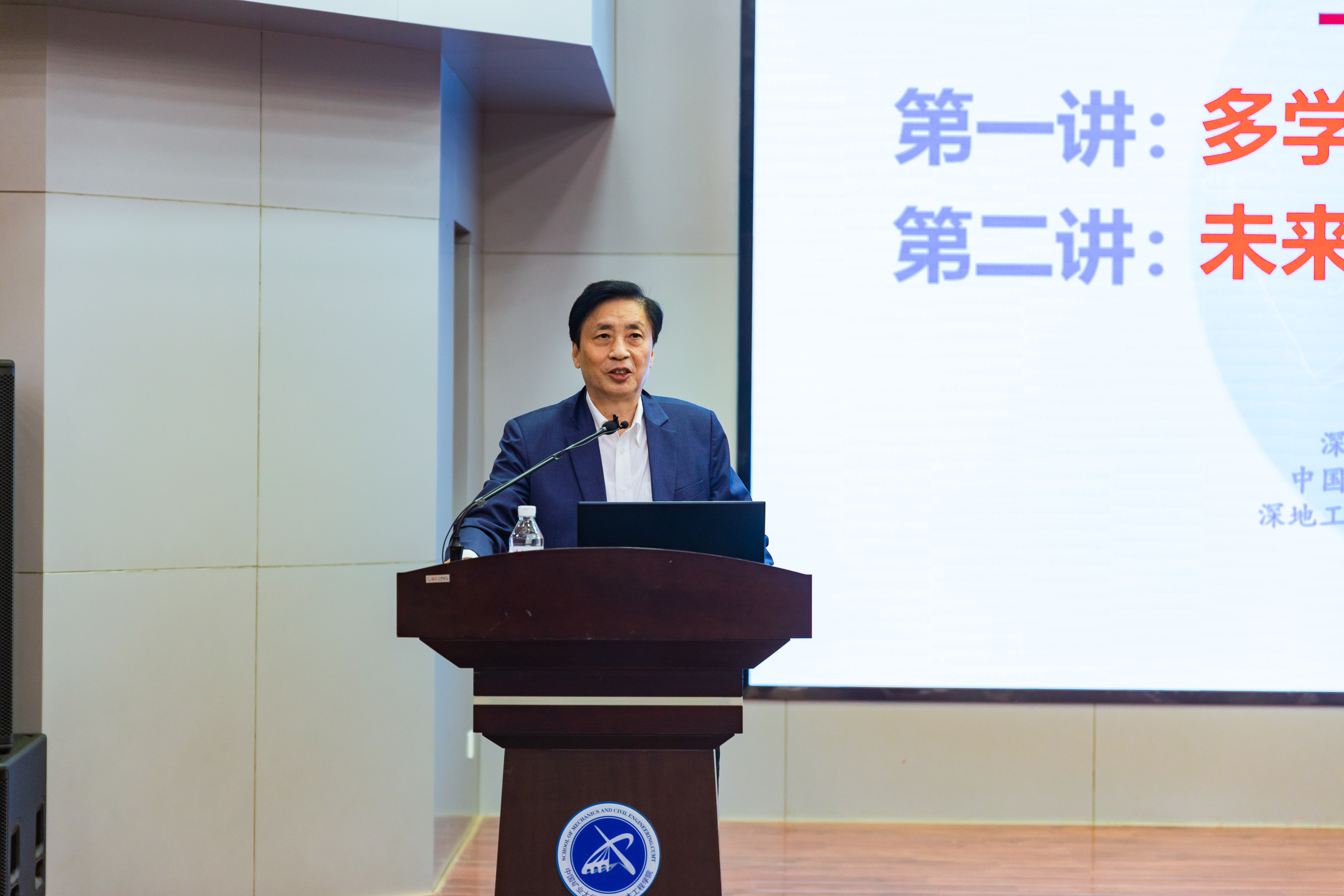 谢和平作《土木工程概论——未来土木工程走向深地深海深空》的主题报告。报告第一讲为“多学科交叉的工程科学”。他指出,土木工程是一门融合了土木、力学、材料、环境、人工智能等多学科交叉的工程科学,要培养能探索科学前沿、创造未来技术、真正具有国际竞争力的土木工程人才,关键是要有多学科的知识面和广阔的学科视野。他通过讲解土木工程的基本定律和典型案例,希望同学们能够通过对知识点的掌握,达到启迪思维、应用知识、创造知识的效果。他通过著名科学家钱伟长的事例,激励同学们要学习传承老一辈科学家精神,聚焦前沿领域,攻关核心技术,破解工程难题。报告第二讲为“未来土木工程走向深地深海深空”。他结合国家“四深”科技战略,向同学们介绍了深地科学与深部保真取芯探矿原理与技术、深海可燃冰保压保温取芯原理与技术、月球物质资源开发利用中的土木工程问题,并讲解了谢和平院士团队在破解相关领域核心技术难题中所进行的前沿探索、原理创新和技术突破。最后,他以习近平总书记在二十大报告中对青年的寄语“当代中国青年生逢其时,施展才干的舞台无比广阔,实现梦想的前景无比光明”,勉励同学们要树立远大志向,在矿大的平台上充分施展才华,努力实现梦想。在互动环节,谢和平院士就52av