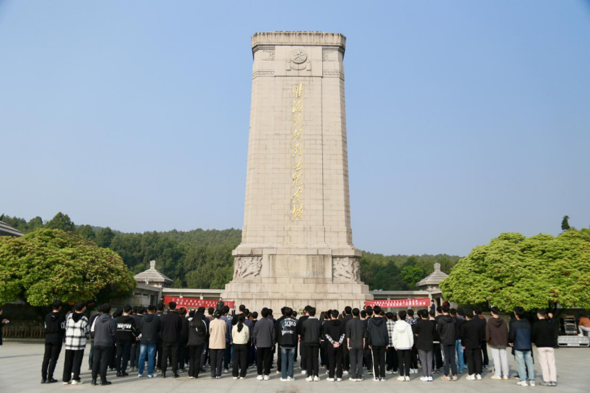 与会代表和学院学生预备党员赴淮海战役烈士纪念塔开展祭英烈活动