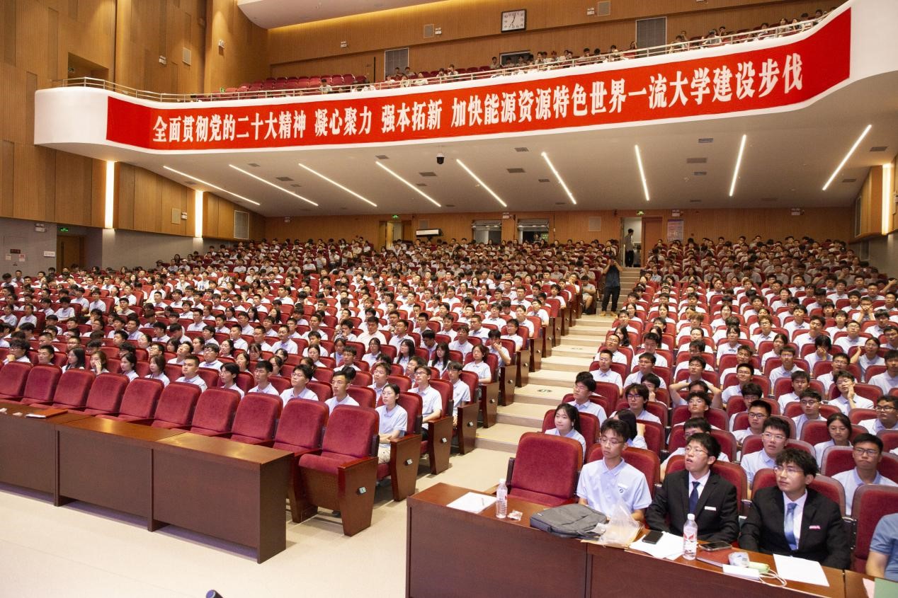 2024级新生李亚澎作为新生代表发言,他表达了圆梦矿大的喜悦,表示将坚定理想信念,矢志艰苦奋斗,用美好的大学时光,谱写属于自己的精彩华章。他提到,作为矿大新成员,同学们将肩负建设祖国重任,秉承“自强不息,艰苦奋斗,追求卓越”的矿大精神,恪守校风校训,努力成为有理想、有担当的“矿大人”。他承诺,全体新生将铭记青年使命,锤炼本领,拓宽专业领域,为科技进步和行业发展贡献青春力量。
