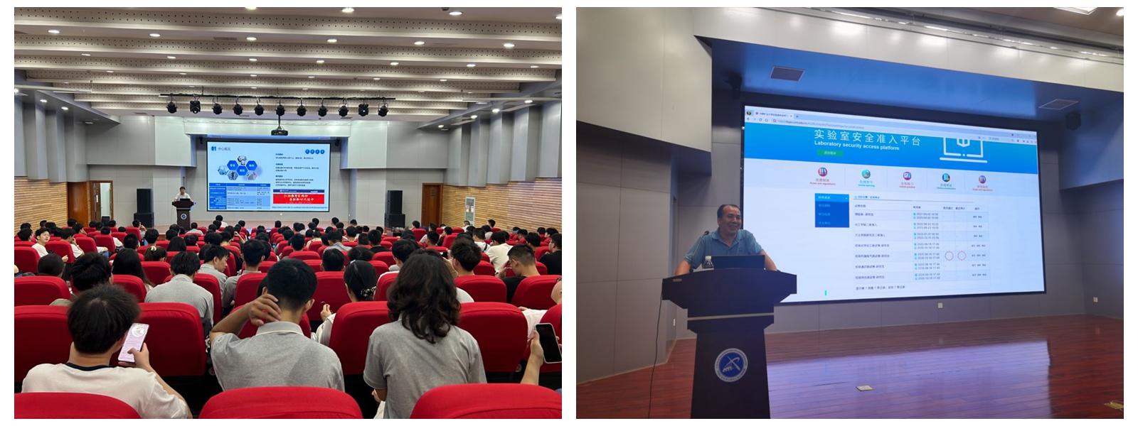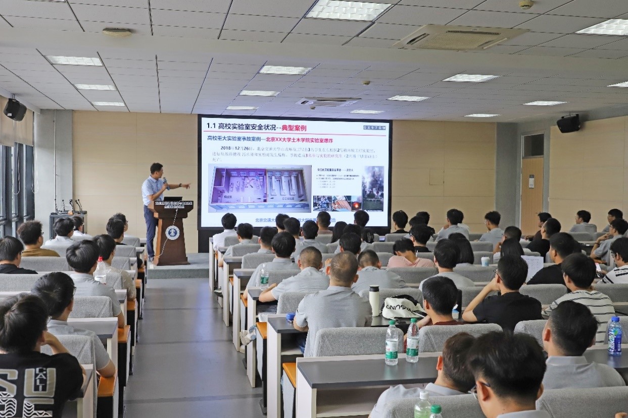根据学校安全管理工作要求等,9月5日上午和下午分别由学院和深地国重实验室组织两场实验室安全教育。上午,力学与土木实验中心吴元周主任和副主任钟卫平老师为学生做了实验室安全知识教育。吴老师从中心概况、实验设备、实验教学以及开放共享四个方面向2024级研究生介绍了力学与土木实验中心支撑学科专业发展和人才培养的功能,重点介绍了中心大型仪器设备参数及功能,并简要介绍了仪器设备预约使用流程。钟老师从大量实验意外事故案例引入,强调实验室安全的重要性,结合国家、江苏省以及学校政策法规,告诫同学们一定要树立安全意识,要遵守实验规范要求,做好实验室安全工作。下午,深地工程智能建造与健康运维全国重点实验室赵春晓老师和朱科企老师为新生进行实验室安全教育培训,培训内容涉及实验区域和研究生工作室的安全与管理等。