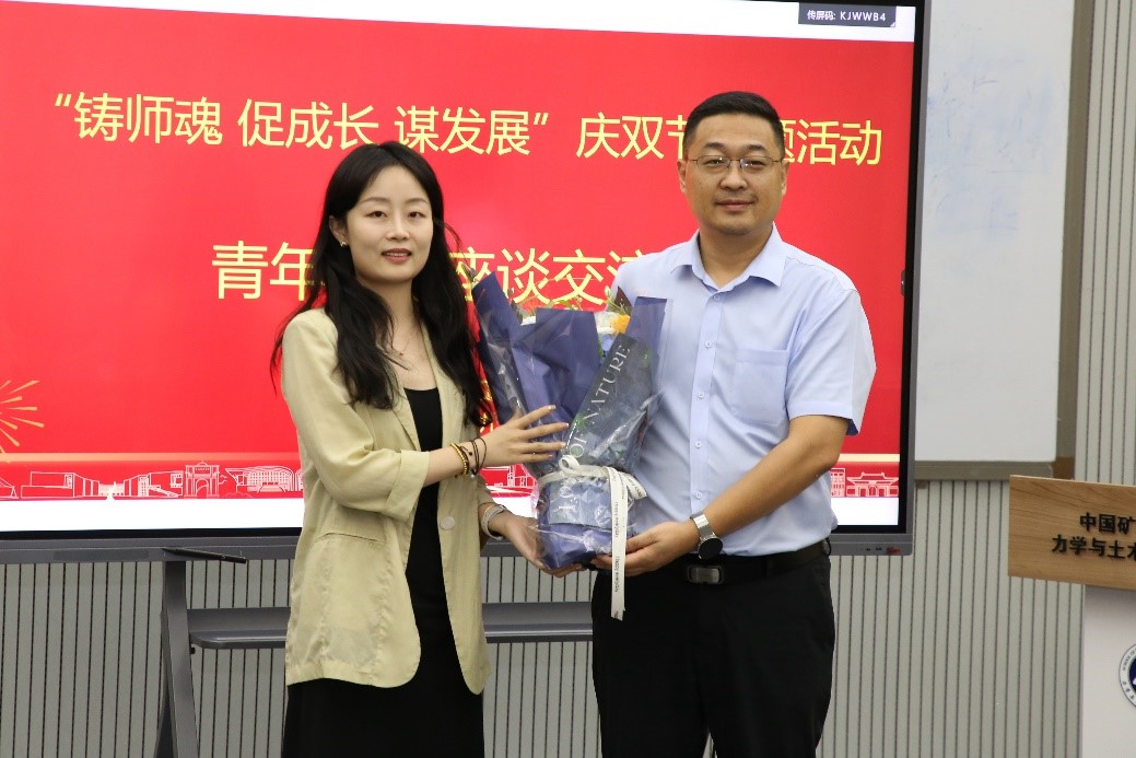 值第40个教师节和中秋节来临之际,2024年9月10日下午,学院在B201开展双节同庆主题活动,组织“铸师魂 促成长 谋发展”青年人才座谈交流会,院党委书记马占国主持会议,院长李树忱、副书记李智、副院长张营营、周劲锋、王迎超,长江学者青年学者陈伟、国家优秀青年基金获得者陈培见、校十佳辅导员张琳、18名青年教师代表出席会议。