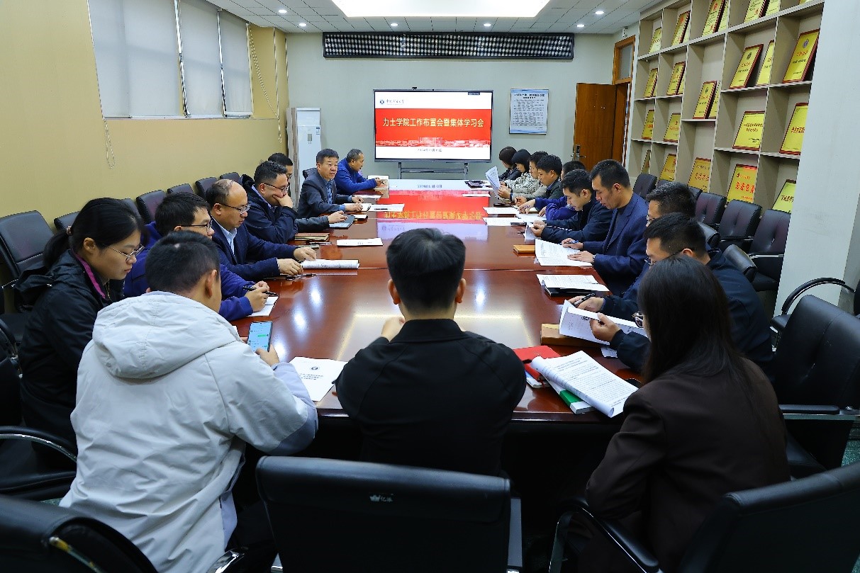 11月15日下午,力土学院在A220会议室召开工作布置暨集体学习会,深入学习全国教育大会精神,布置开展强校战略研讨。院党政领导、院党委、教职工党支部书记、辅导员参加会议,院党委书记马占国主持会议。