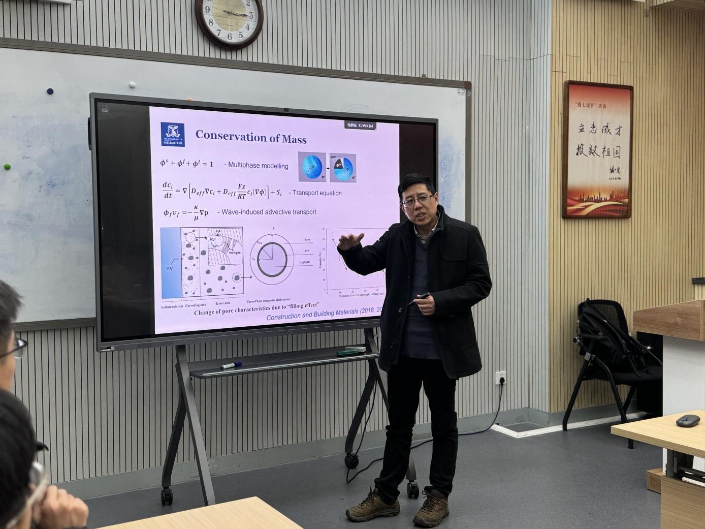 会上,张立海教授首先为大家带来了题为《Infrastructure asset protection and management for a sustainable future》的学术报告。他深入剖析了基础设施保护与管理在可持续发展中的重要性,分享了最新的研究成果和案例,为与会者提供了宝贵的学术参考和启示。紧接着,张教授向在座师生详细介绍了《Engineering Structures》期刊的概况以及论文投稿技巧,并分享了作为期刊编委的宝贵经验。他详细介绍了期刊审阅过程中需要注意的要点,以及在论文撰写和投稿过程中的实用技巧。张教授指出,一篇优秀的论文不仅要有创新性的研究成果,还需要注重逻辑清晰、语言流畅、图表规范等方面。他的分享为与会者提供了实用的指导和建议,让大家受益匪浅。