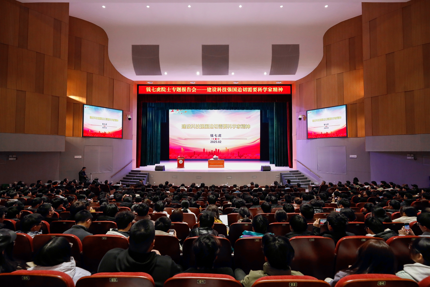 2月23日下午,我国防护工程领域奠基人、“八一勋章”和国家最高科学技术奖获得者、中国工程院院士钱七虎应邀来校,以“建设科技强国迫切需要科学家精神”为题,为师生讲授“开学第一课”。校党委书记刘波、中国工程院院士赵跃民、副校长叶继红出席活动,全校1000余名师生现场聆听。报告会由校党委副书记李江涛主持。