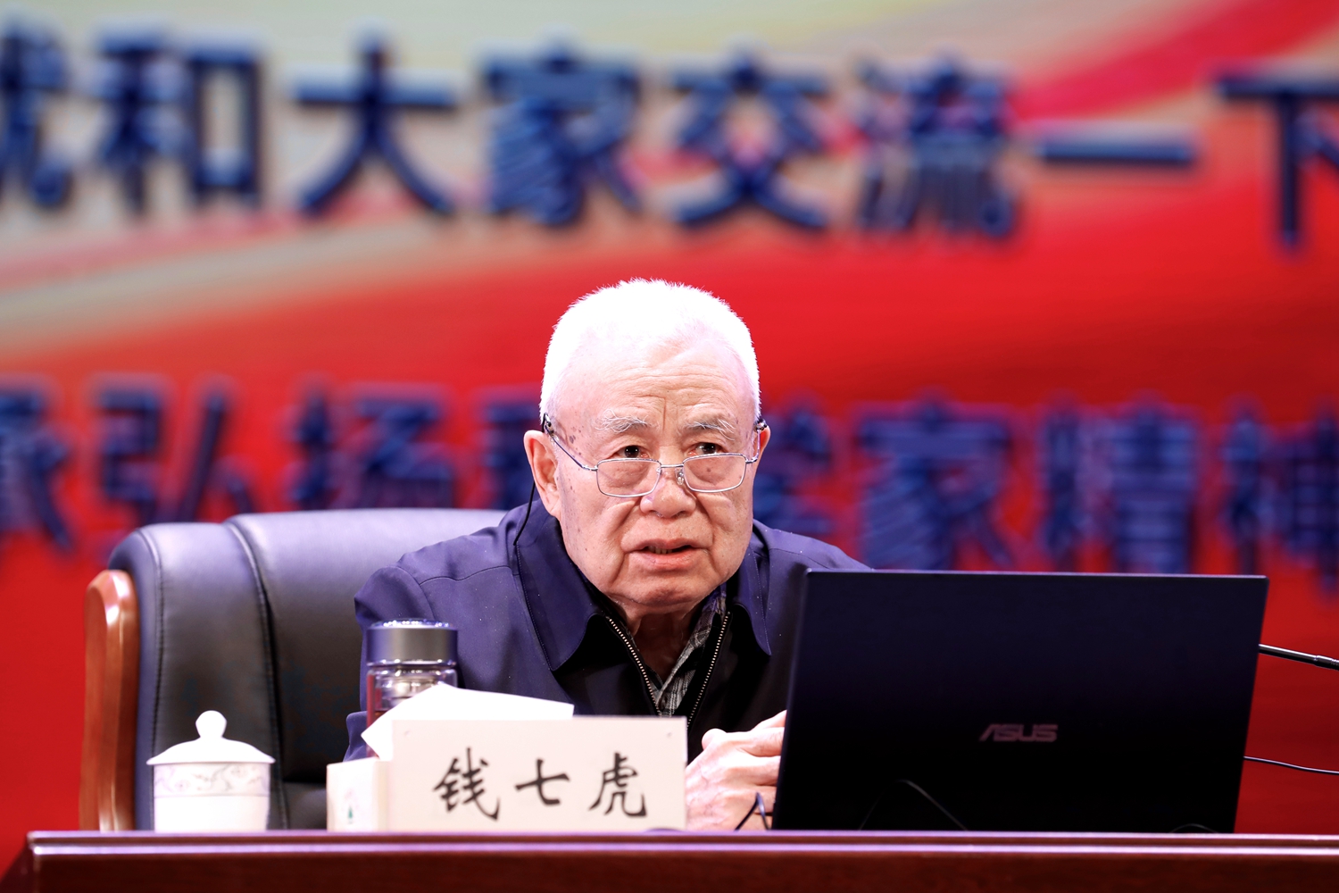 钱七虎院士强调,培育科学家精神“最重要的就是要不断学习,特别是要学习英雄烈士、老一辈革命家、老一辈科学家等伟人的精神,在他们精神感召下树立和坚定自己的远大理想,树立和坚定自己的革命人生观。”结合68年的科研与人生经历,他深情寄语全校师生:“科学家精神需要在实践中锤炼。要主动学习英雄楷模的品格,在重大工程攻关中磨砺意志,在‘卡脖子’技术突破中彰显担当。”当谈及自身感悟时,他坚定表示:“只要祖国需要,我随时应召奔赴一线!”