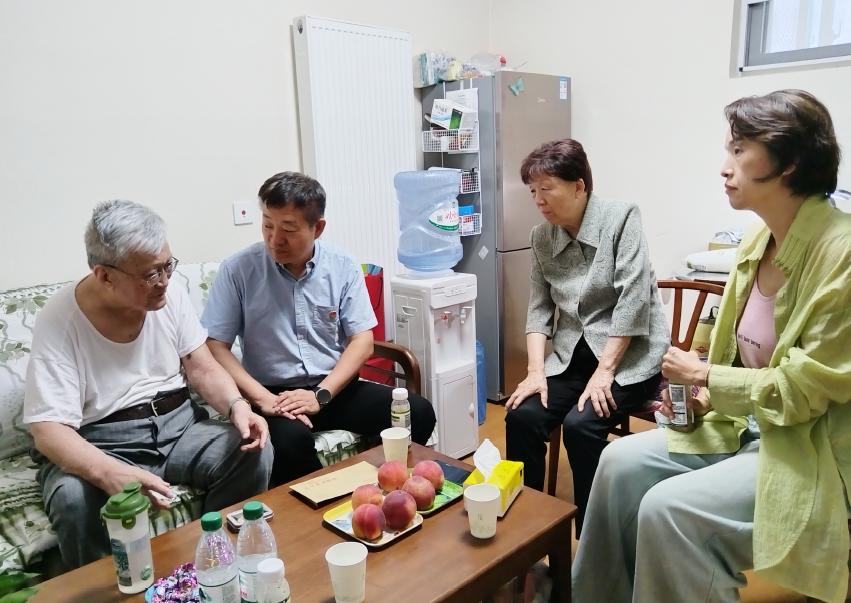 值中国共产党成立104 周年之际,为弘扬党的光荣传统和优良作风、表达对退休老教师的关心与敬意,2025年7月1日,学院党委书记马占国、党政办主任孟燕和人事秘书王亮亮等看望了退休党员教师,送上党组织的关怀与温暖,致以诚挚的节日问候。同时,向退休老教师们介绍了学院近年来在学科建设、人才培养、科学研究等方面的改革措施及取得的突出成绩。
