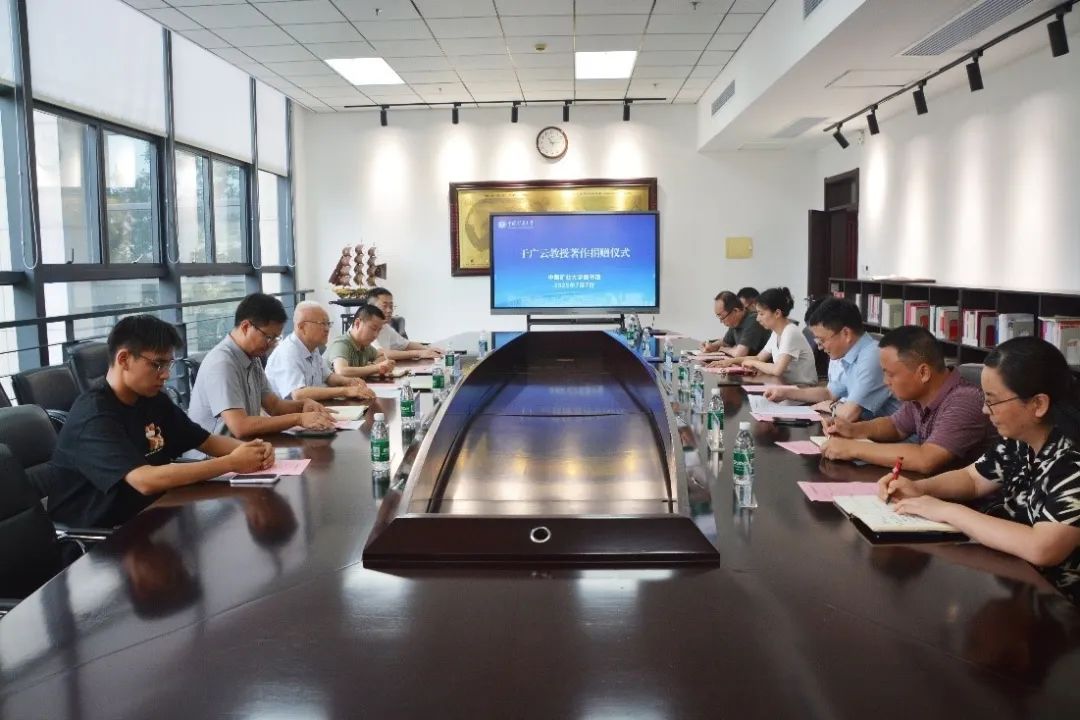 在庄重而热烈的氛围中,于广云教授将其凝聚多年智慧与心血的著作,郑重移交给王新宇馆长;王新宇向于广云颁发了捐赠证书。随后,于广云深情回顾了自己四十余年的学术生涯,介绍了所捐赠的9本著作特别是其中3部国家标准的创作历程,阐述了这些标准在矿建工程领域对保障安全生产、促进行业协作、支撑技术发展所发挥的积极作用,希望自己的研究成果借助图书馆平台更好地服务于师生的学习与研究,为学校的教学科研贡献绵薄之力。