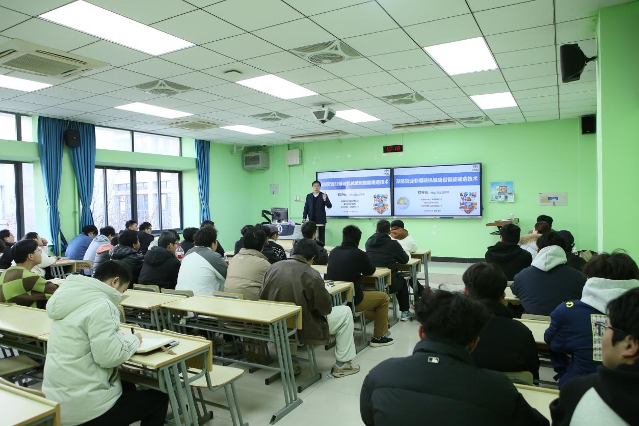 11月19日,学院开展“学术前沿,启迪人生——专家学者进课堂”系列讲座第十一讲暨Office Hour第八期活动。北京中煤矿山工程有限公司副总经理、中国煤炭科工集团首席科学家程守业走进2022级岩土与矿山工程专业本科生班,并作题为《深部资源非爆破机械破岩智能建造技术》的学科前沿讲座。讲座由学院党委副书记纪承主持。