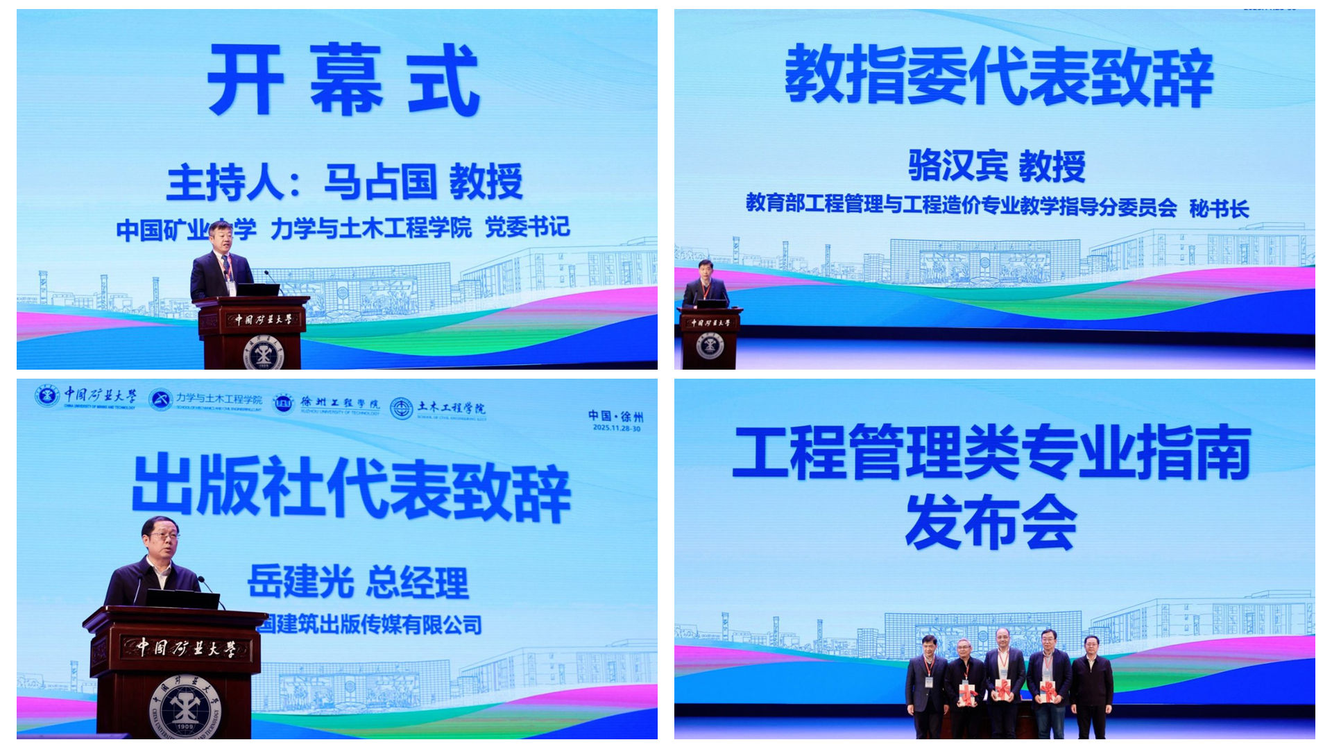副校长王忠宾、教育部工程管理与工程造价专业教学指导分委员会秘书长骆汉宾教授、中国建筑出版传媒有限公司总经理岳建光分别致辞。会上发布了《高等学校工程管理、工程造价、房地产开发与管理本科专业指南》。开幕式由学院党委书记马占国主持。