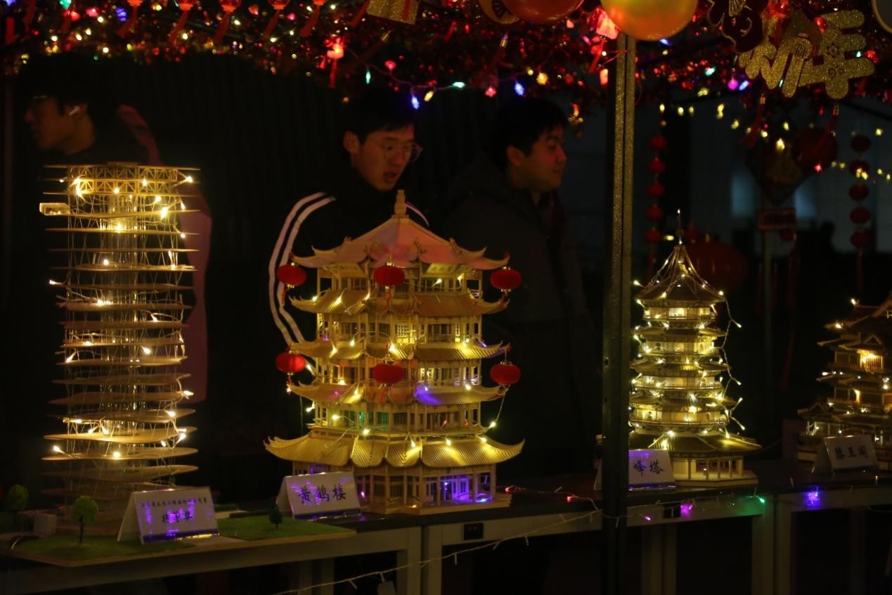 青春广场跨年晚会、体育馆趣味游艺宫、树坛步道璀璨灯展三大板块同步联动。学院元旦游艺宫活动设置有猜灯谜、投壶等10余个趣味游戏。今年特别设置了元旦祝福环节,邀请师生们写福字、组春联、送祝福。体育馆前树坛步道学院灯展上,同学们精心制作的传统名楼与现代建筑交相辉映,传统灯笼与现代光影交织,既承载着对历年获奖作品模型华灯初上的温情追忆,也寄托着对新一年美好生活的满心期许,成为跨年夜里一道亮丽的风景线。青春广场启幕的跨年晚会上,52av