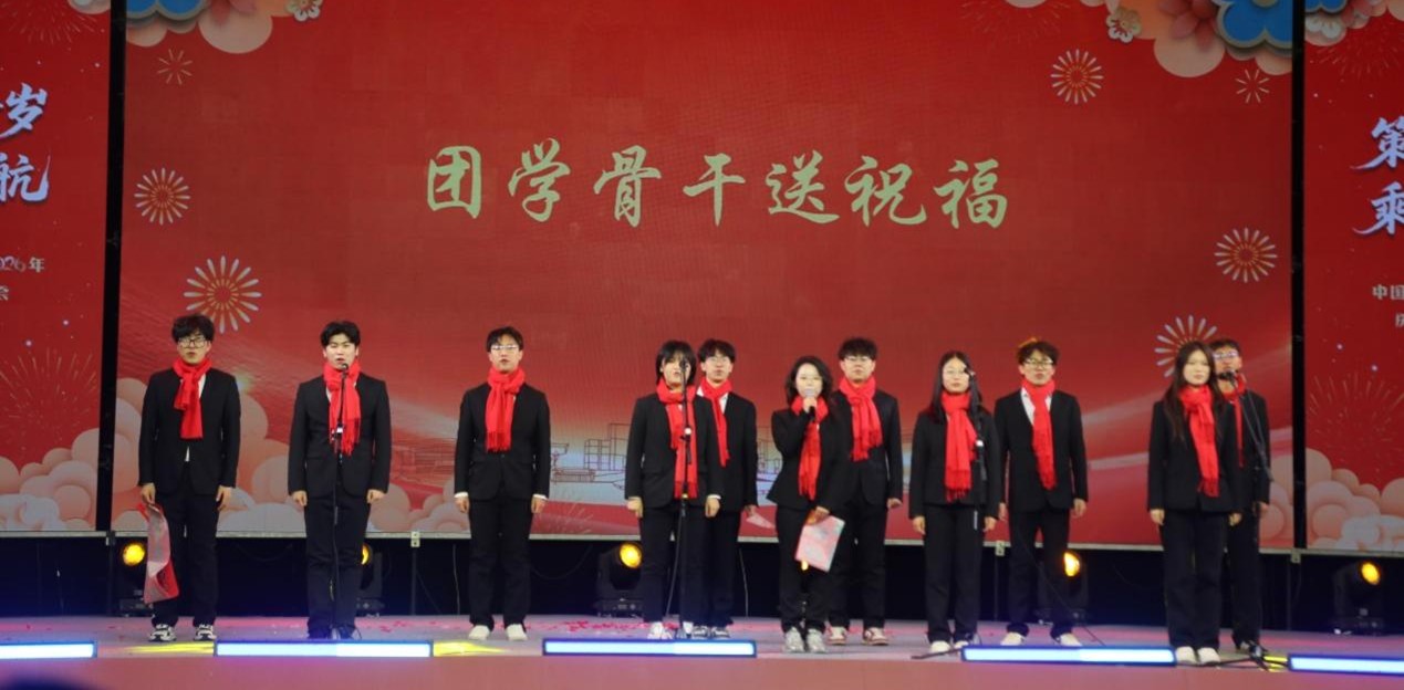 团学骨干作为代表登台送祝福,带着满满的诚意与热忱,祝福全校师生工作学业精进、万事顺意。