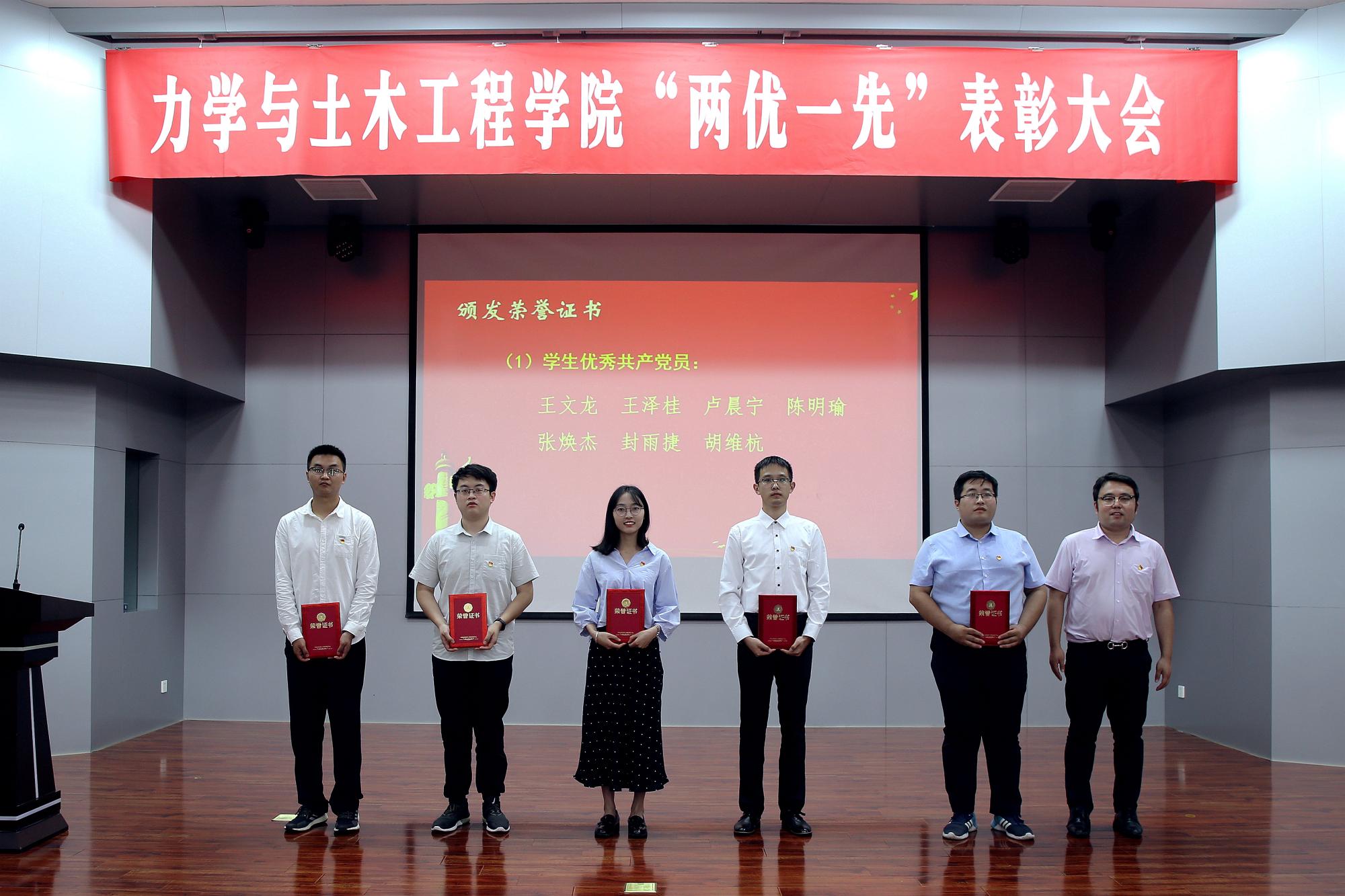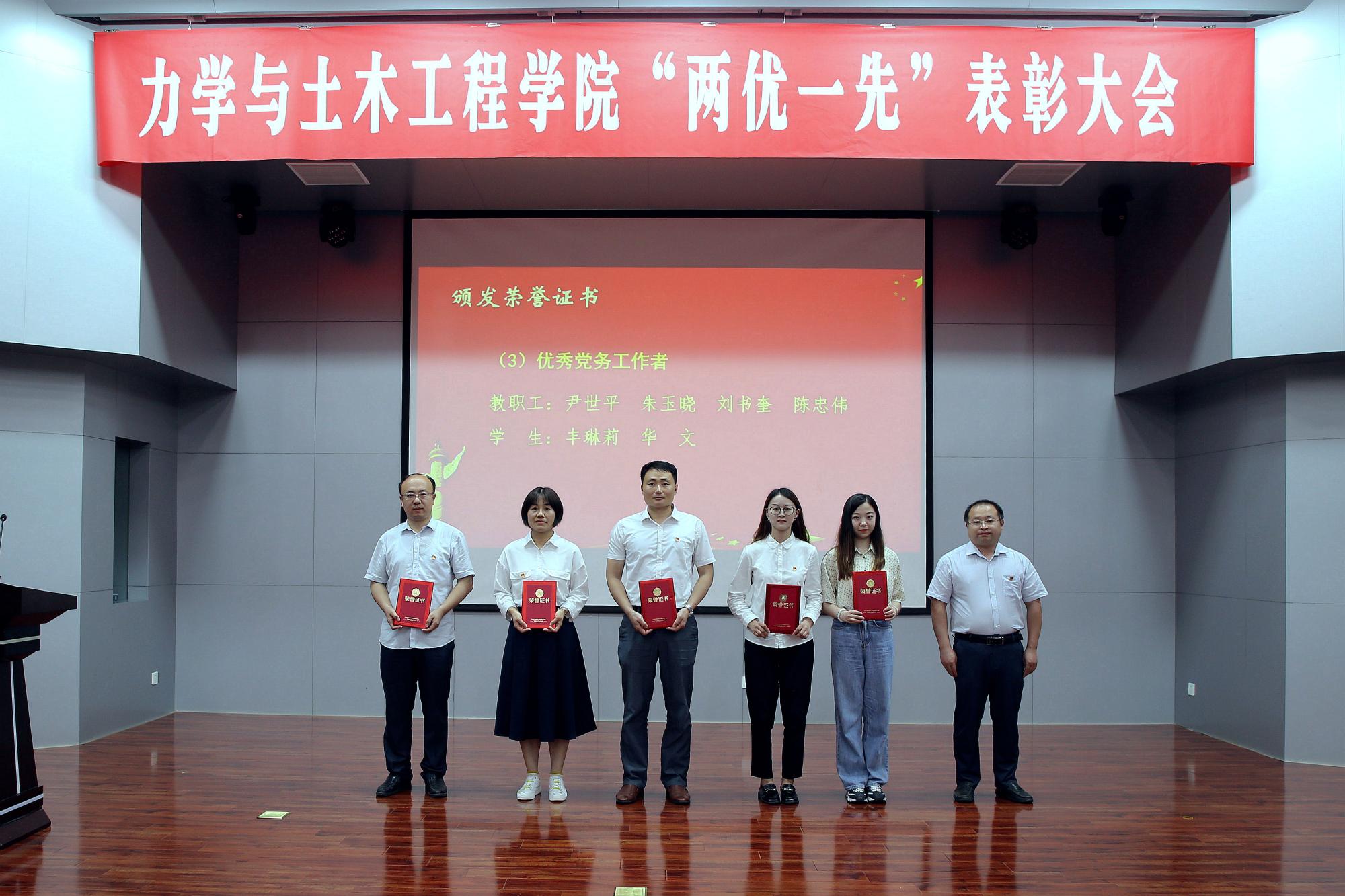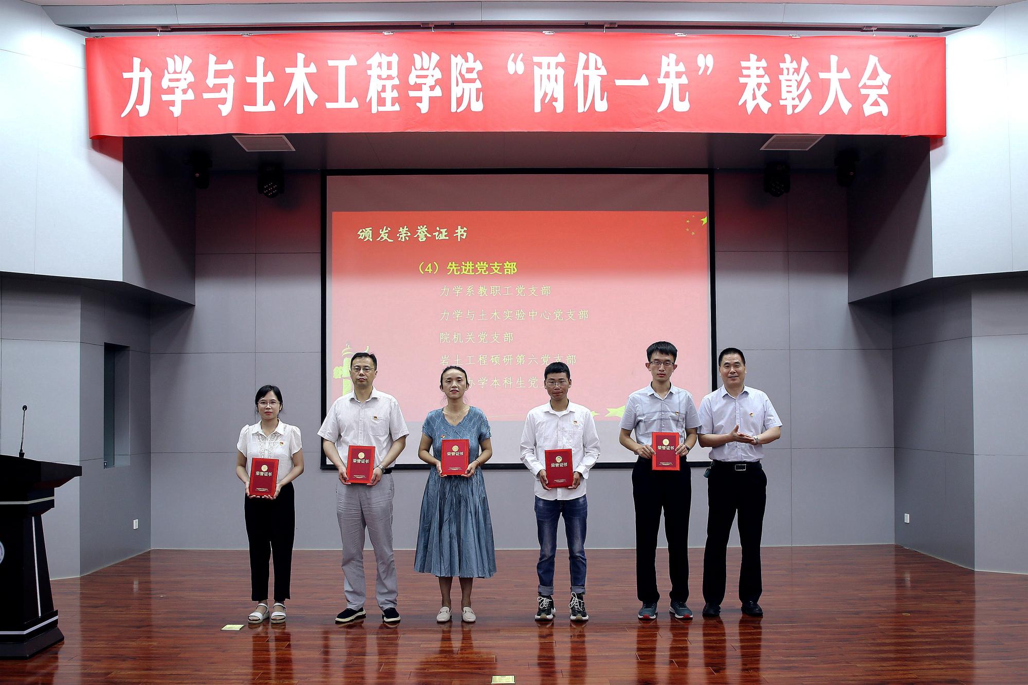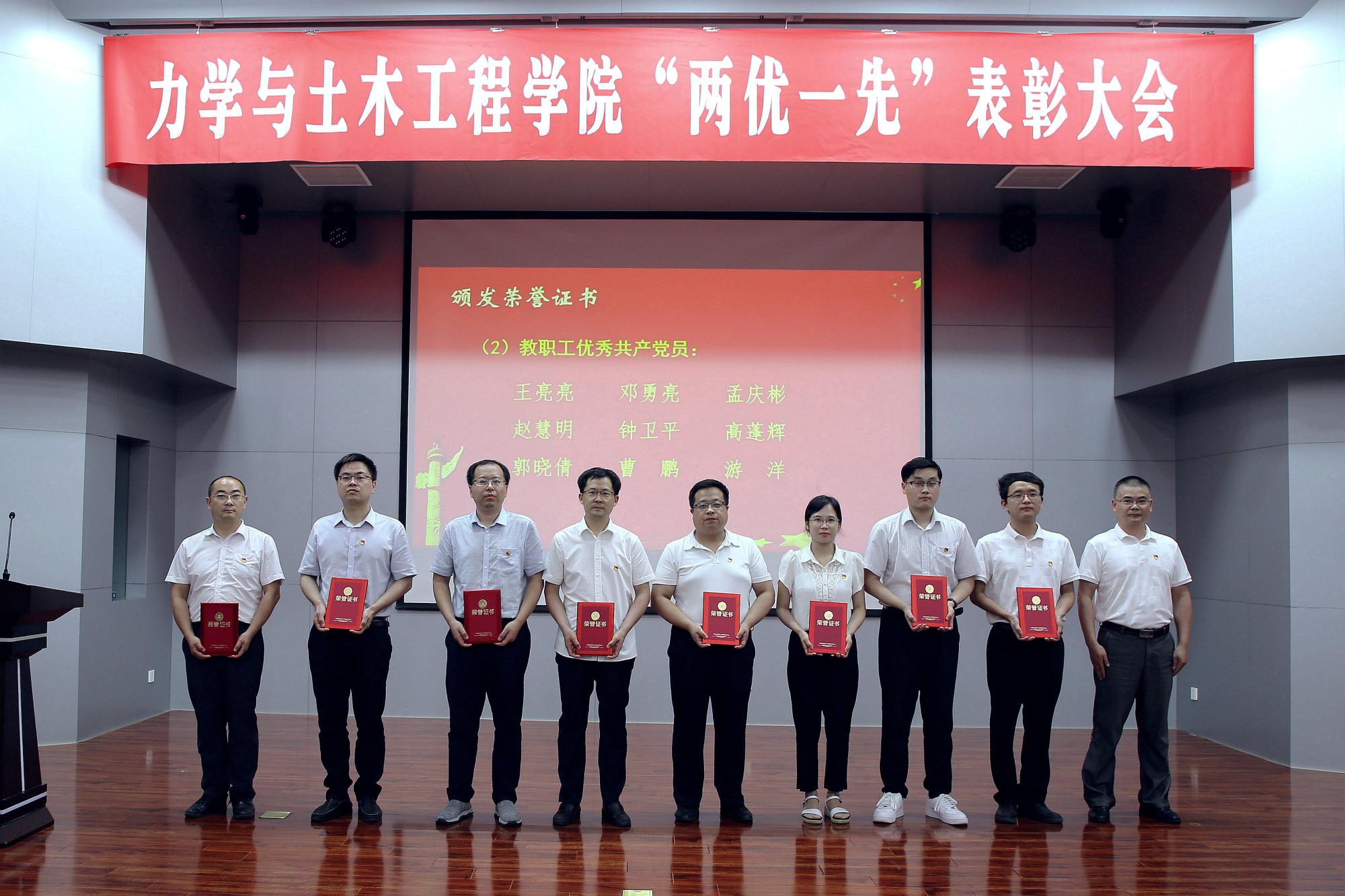 大会在全体与会人员齐唱国歌声中开始。院党委副书记李智宣读了学院在省级、校级党建评审中获奖的名单,以及学院2018-2021年度优秀共产党员、优秀党务工作者和先进党支部的表彰决定。参会的学院领导为优秀个人和先进集体代表颁发了荣誉证书。