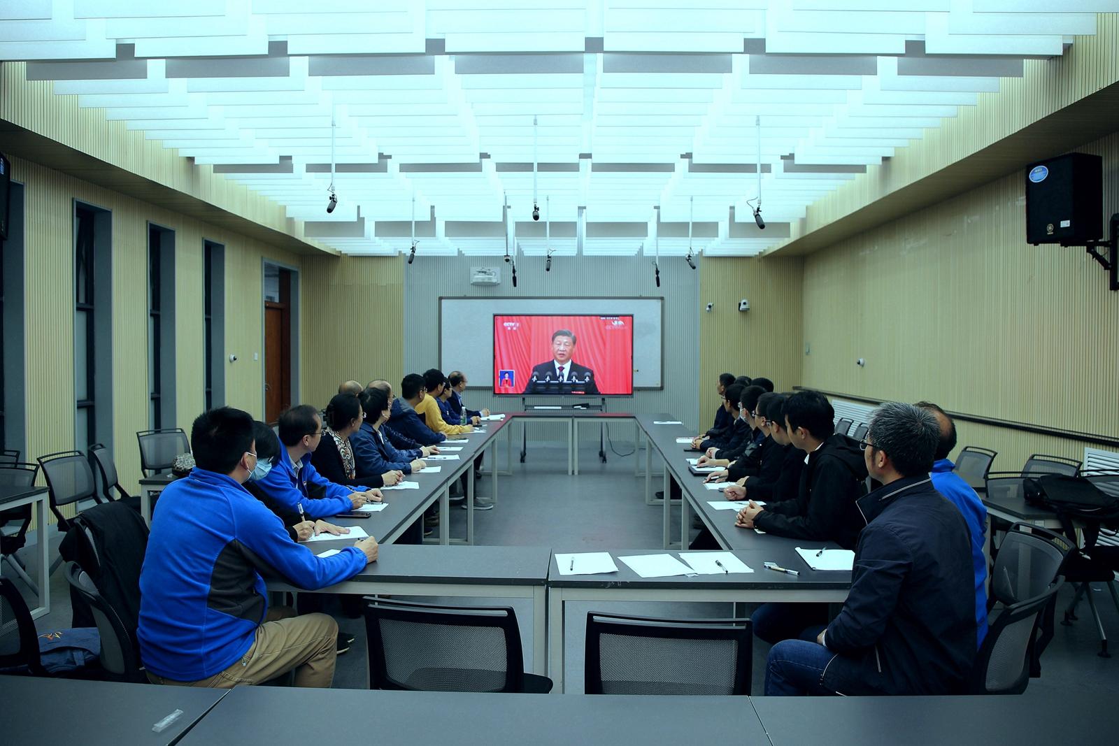 学院领导班子全体成员和院党委委员在A220会议室集中收看了党的二十大开幕会直播。全院在力土学院楼、理学院楼、学生宿舍区共设置7个会场,组织教职工党支部、学生党支部集中收看,其余师生在宿舍、工作室等场合认真收听收看党的二十大开幕会。开幕会后,各会议室随即召开了座谈会、谈论会,观会师生纷纷表示,祖国的伟大变化和党的事业的伟大发展让我们倍感自豪,党的二十大的胜利召开鼓舞人心!