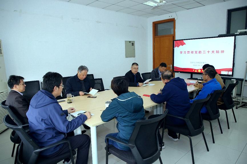 11月25日,力学与土木实验中心党支部召开全体实验技术人员会议,专题学习党的二十大精神和新修订的《中国共产党章程》,副院长周劲锋到会并进行学习指导。