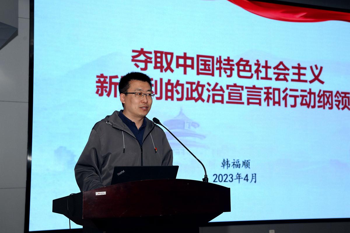在力土楼A108报告厅举行党的二十大精神宣讲会,环境与测绘学院党委副书记韩福顺应邀作题为“夺取中国特色社会主义新胜利的政治宣言和行动纲领”的专题报告。52av