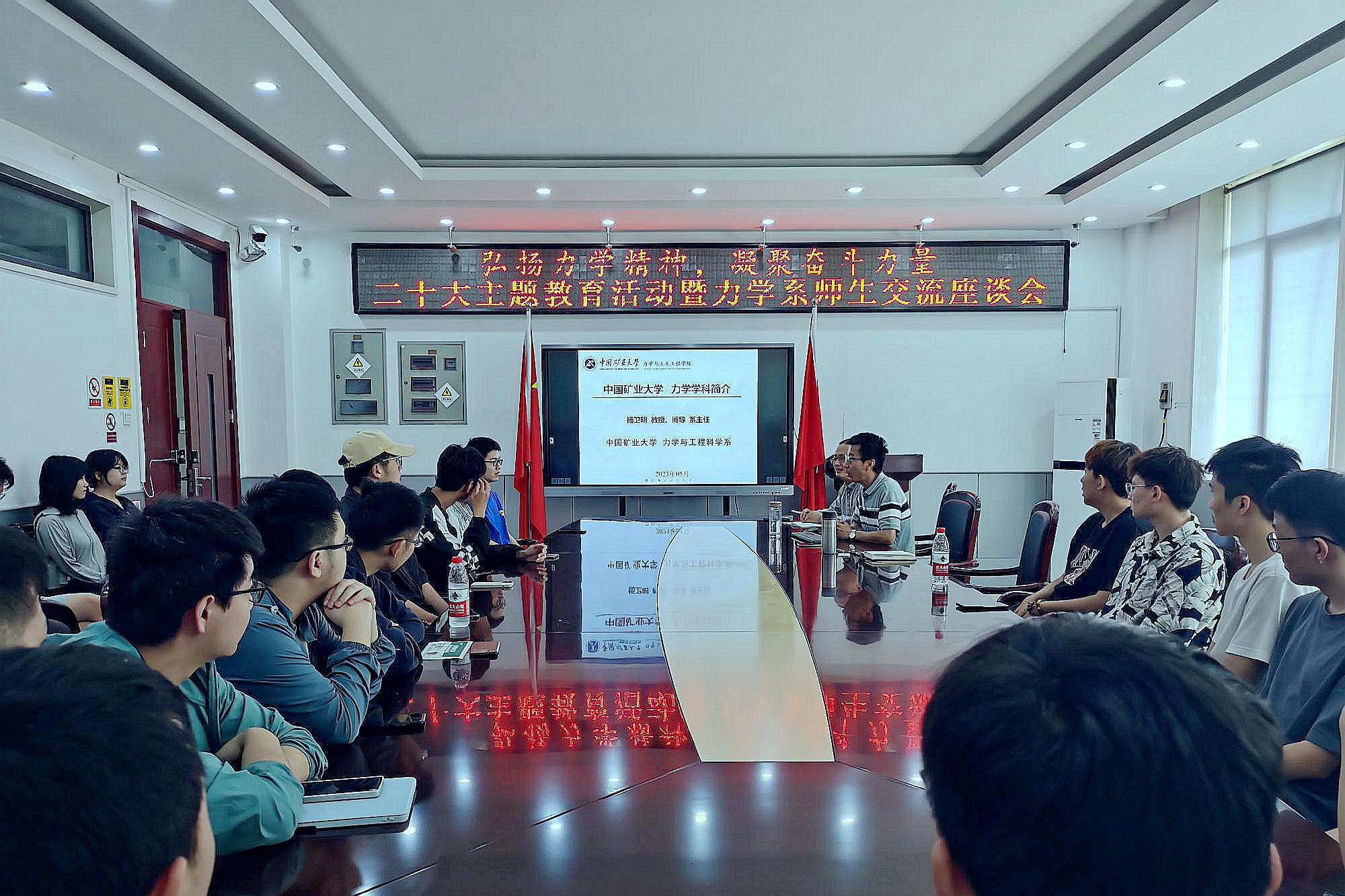 座谈会上,杨卫明主任分别从学科历史、师资队伍、人才培养、科学研究、平台建设和学术交流等对力学学科进行了介绍,鼓励学生积极进取,传承矿大力学人的奋斗精神。随后,张桂民副主任就力学学科研究生培养的情况进行了介绍,并针对同学们关心的研究生政策问题进行了讲解。