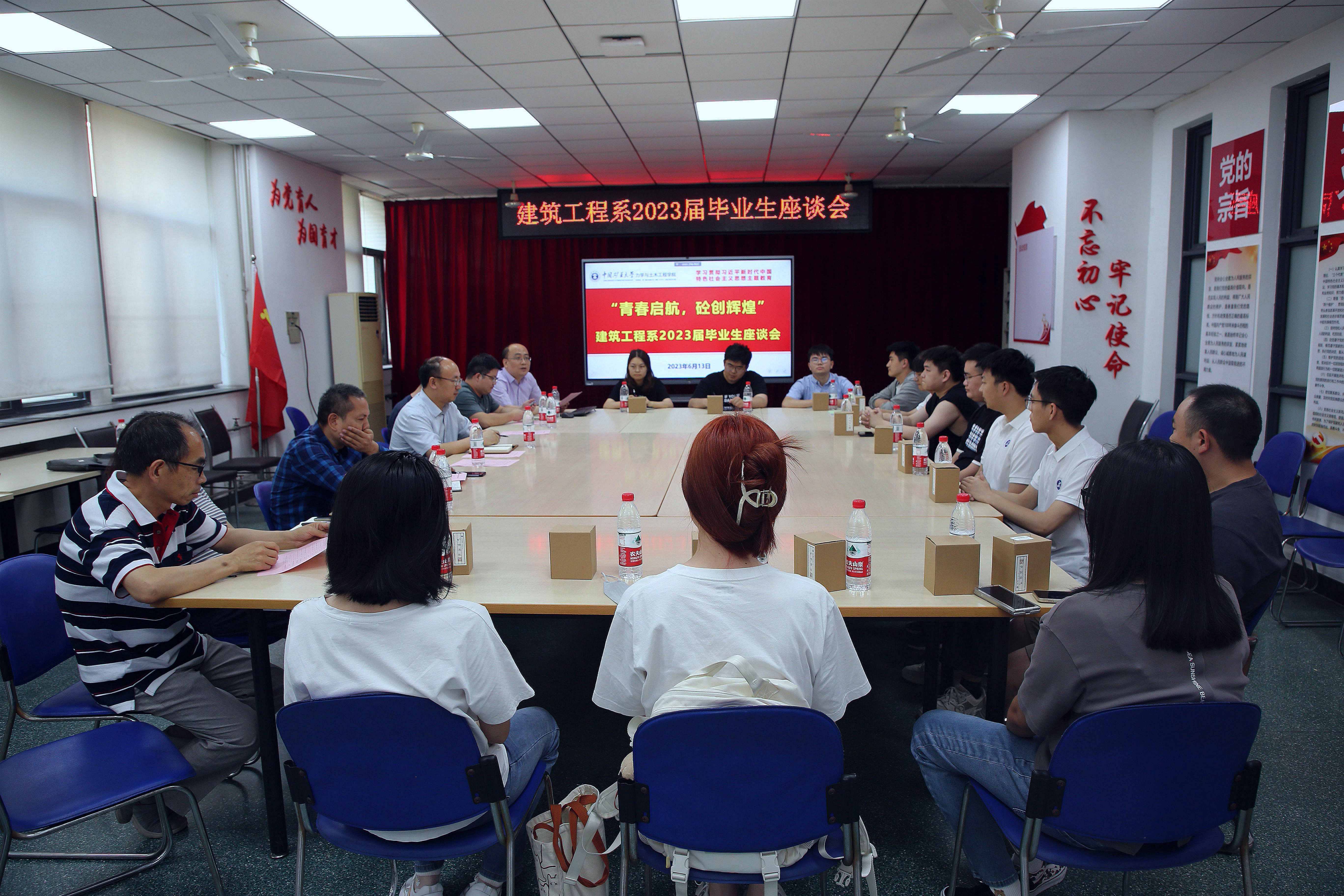 为进一步落实学习贯彻习近平新时代中国特色社会主义思想主题教育,6月13日下午,建筑工程系教职工党支部邀请了15名毕业生代表,在党员之家B205召开“青春起航,砼创辉煌”建筑工程2023届毕业生座谈会。副院长张营营、院党委委员吕恒林、支部书记尹世平、实验中心刘运立、系副主任鲁彩凤、组织委员李生元、宣传委员陈圣刚等教师代表参会,会议由党支部副书记张风杰主持。