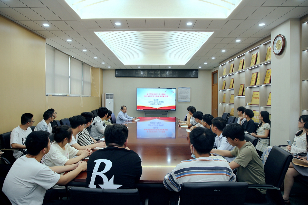 副院长、党委委员杨圣奇教授在学院楼A220会议室以“学习贯彻党的二十大精神,推进学院研究生教育高质量发展”为题,为2021级岩土工程方向研究生讲授专题党课。