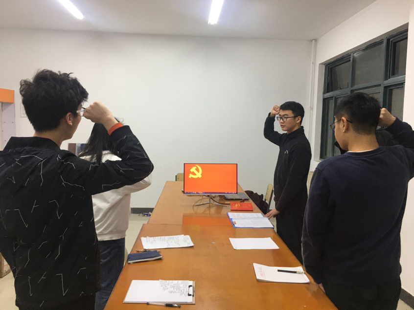 晚上9点,党日活动正式开始。马玉田同志和李帅勇同志作为党员代表重读了入党志愿,他们叙述了当时的入党初心,与过程中不断接受党的教育,提高为人民服务本领的经历。接着,其他同志也回顾了成长经历,并相互交流,结合实际工作讨论入党以来如何提高党性,作出贡献;同时,也为今后前行制定了目标与计划。最后,党支部副书记程维军带大家重温入党誓词,宣誓完毕,参会同志进行了自我检查,并表明不忘初心、砥砺前行,提高个人能力,为党的事业奋斗终身的决心。