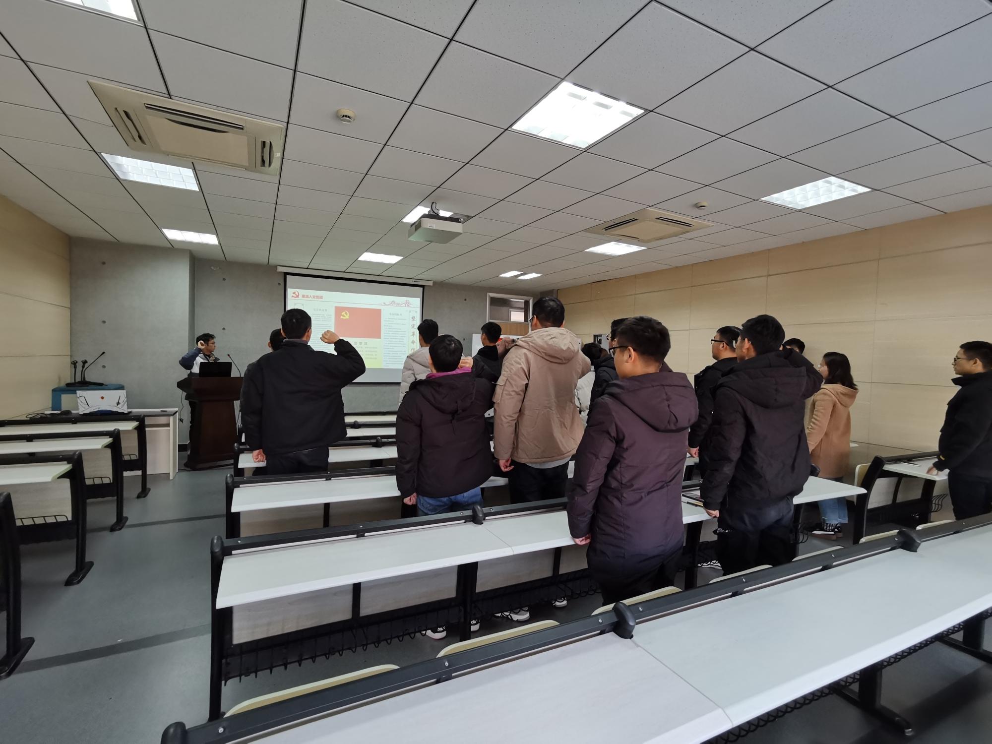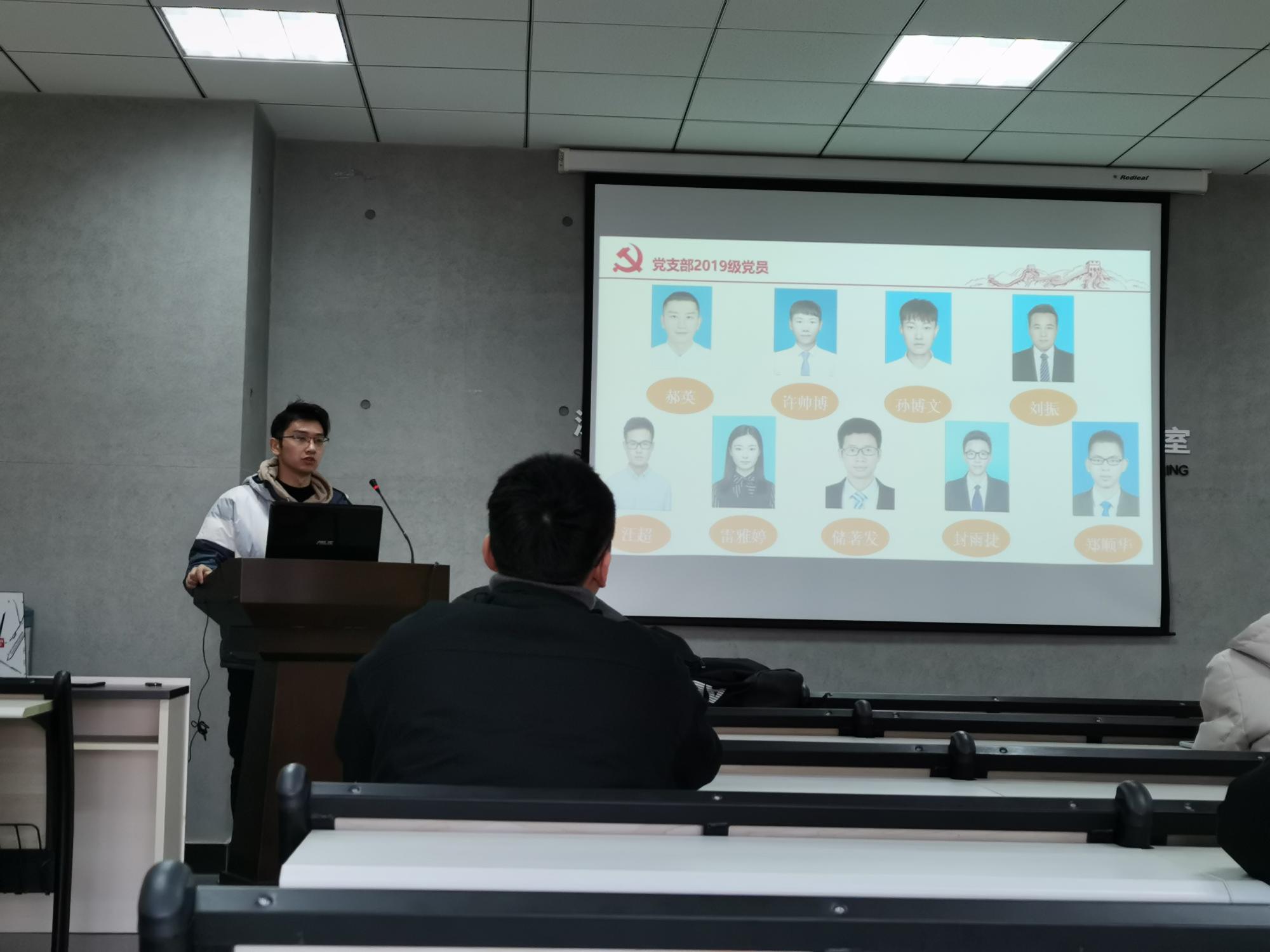 首先,支部书记郝英同志对今年新加入的2020级新生党员表示欢迎,并组织大家做了自我介绍,让每一个人都能对彼此有更深刻的印象;第二部分向大家传达本次“五个一”教育实践活动,包括开展一次读书活动、重读一次入党志愿、重温一次入党誓词、组织一次发展研讨、回答一份问卷这五个部分,接着,支部书记郝英向大家推荐了《苦难辉煌》一书,并观看了“苦难辉煌”纪录片第一集,鼓励大家相互交流;第三部分支部书记郝英向支部成员介绍了两名特级战斗英雄的辉煌故事,分别是:中国人民志愿军第一位特等功臣和特级战斗英雄杨根思、一个在和平年代所作所为并不逊色于他在战争时期壮举的特级战斗英雄张国富;第四部分观看了土木学院宣传片《拓进》,回顾学院发展历程,宣传片充分展示了学院土木工程学科厚重的历史底蕴以及丰硕的研究成果,同时学习了前辈迎难而上、勇于担当、锐意进取的精神和意志,大家感触颇深;第五部分是和支部成员交流如何成为一名合格的党员,总结出党员需要具备四大素质:遵守党章、加强党性;坚定信念、加强学习;遵纪守法、廉洁正派;向榜样学习、向群众学习;会议最后,全体与会党员起立并面向党旗,重温了一次入党誓词。