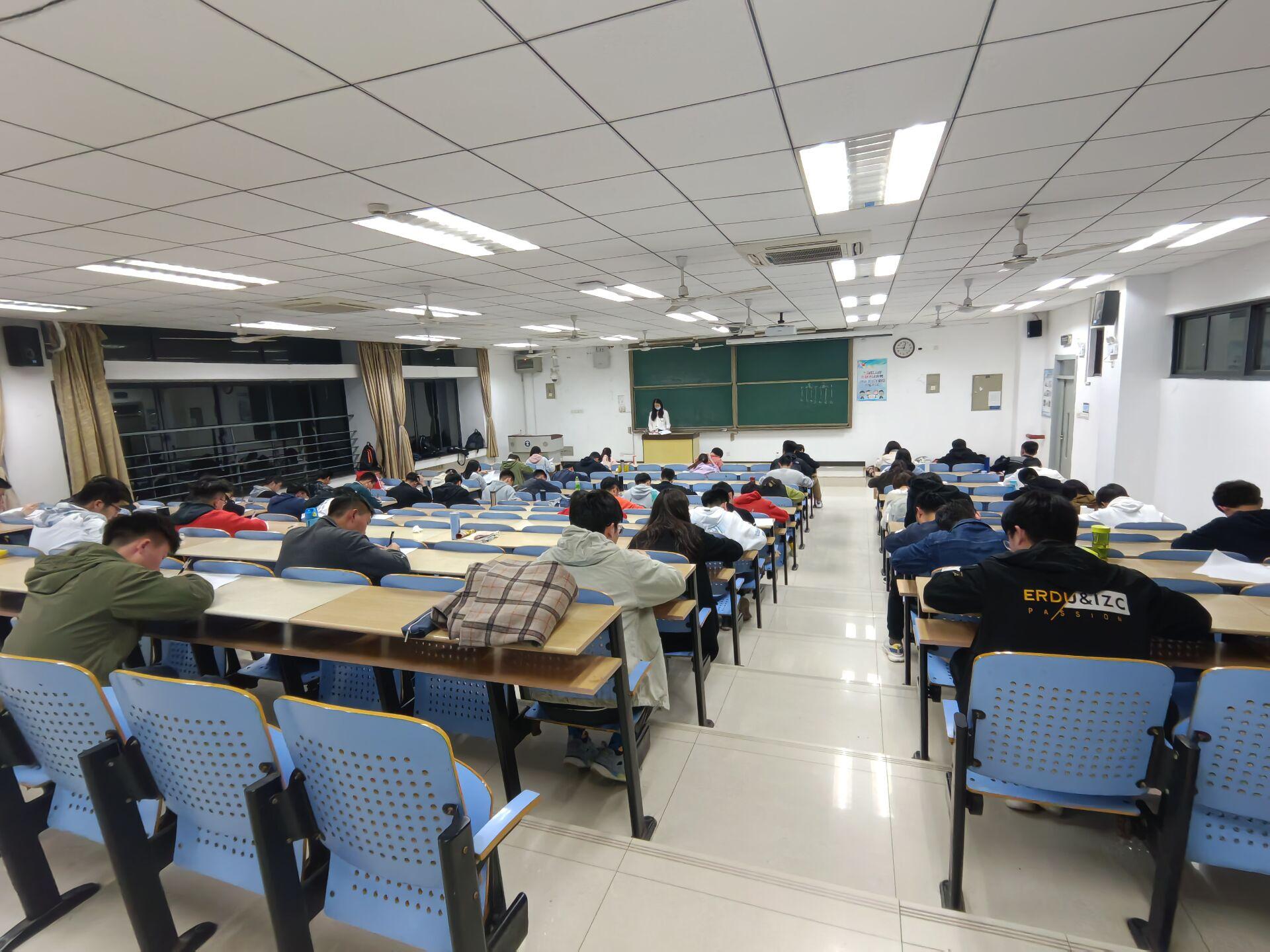 活动开始前,监考人员完成整理考场、布置黑板、领取试卷、组织签到及安排参赛同学入座等工作。竞赛开始后,参赛同学认真作答,活动按照预先安排的流程有条不紊地进行。考试完毕,大家有序离场,由党站相关负责人打扫教室并批改试卷。
