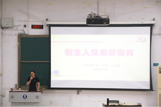 于博二C202和博二C302开展了新生入党启蒙教育。学校党委组织部、党校办公室主任马文彬老师展开教育。