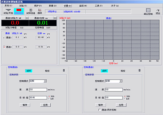 在闭环控制位移模式下,点击“目标值”单位“mm”,此时目标值单位变为“kN”,设定接触时的试验力(如2-5kN)及作动器速度(3-5mm/min),点击“应用”按钮,作动器以设定的“位移速度”加载到设定的试验力后,进行“试验力保持”;