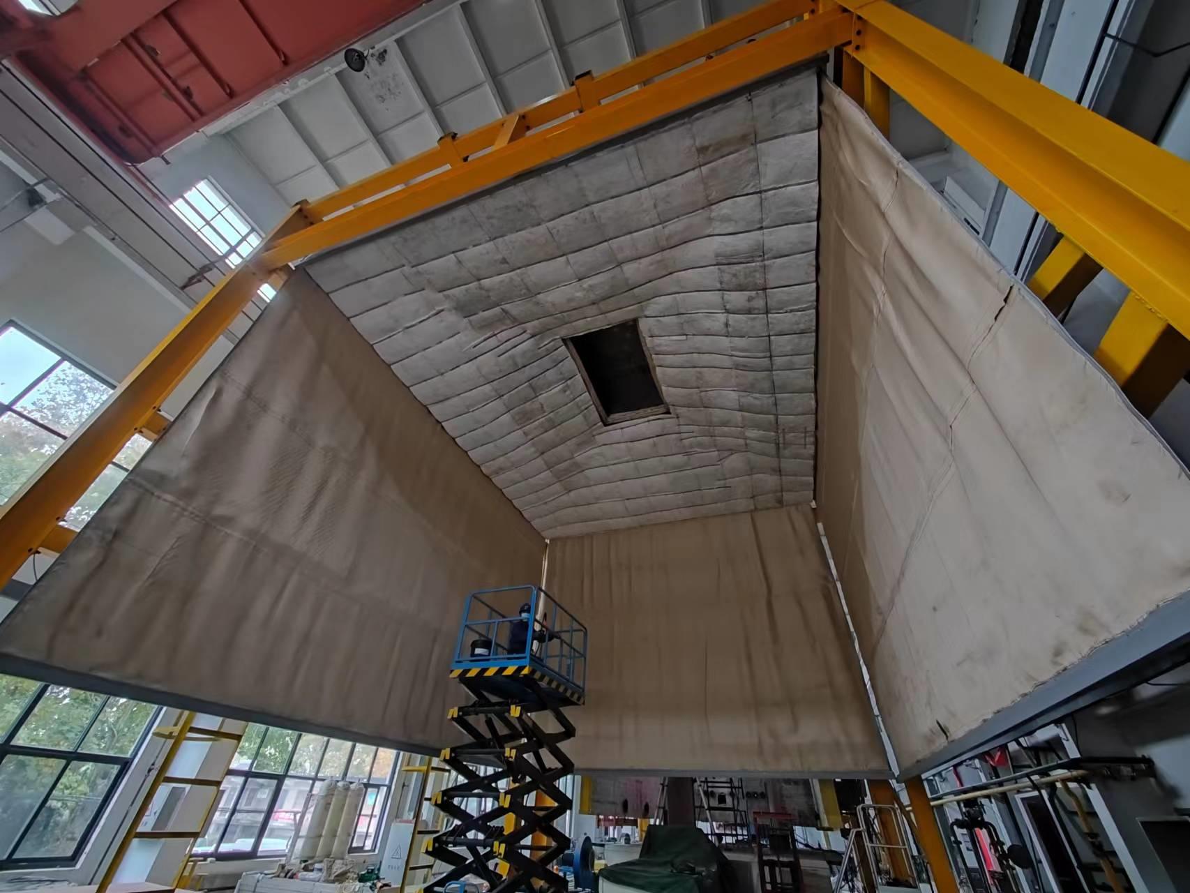 8、除尘流量140000~200000m3/h;过滤面积至少2000m2;净化率99.5%,进行大型真实火灾燃烧实验时的气体排放满足环保标准。
