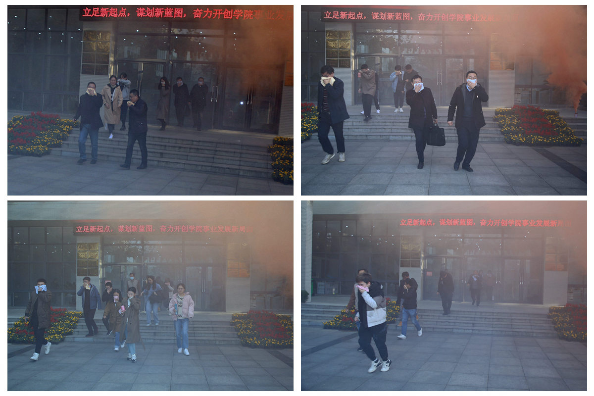 安全生产专项考核细则》,提高学院安全管理工作的重要内容之一。此次演练在校保卫处精心指导和学院师生大力配合下,过程连贯紧凑,真实感强。通过演练,学院师生既提升了紧急情况下的疏散逃生能力,也提升了灭火自救能力,是一场生动的沉浸式安全教育,很好地达到了演练的预期目的。