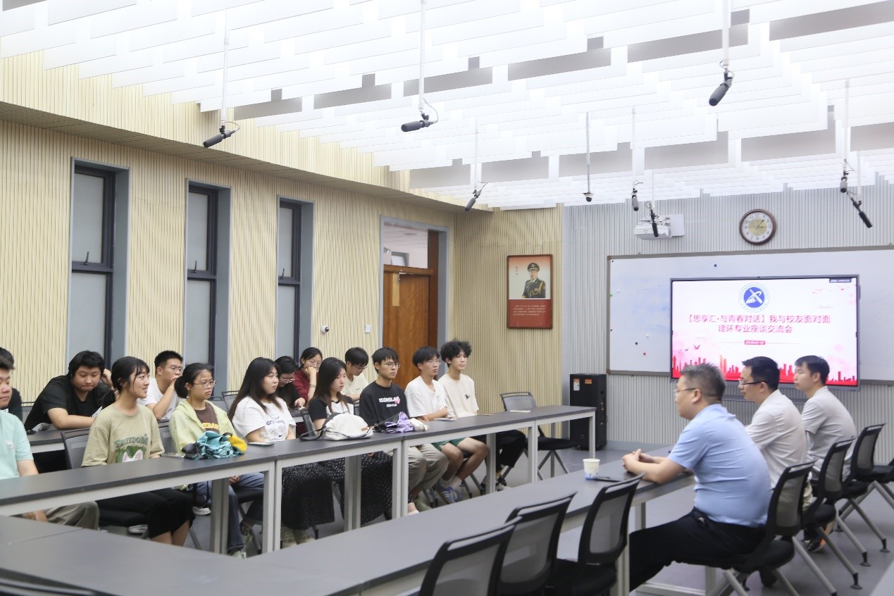 建环专业学生提供与业界杰出校友深入交流的机会。学院建环系教师孙猛、辅导员朱宁、2021级和2022级部分建环专业本科生参加活动。