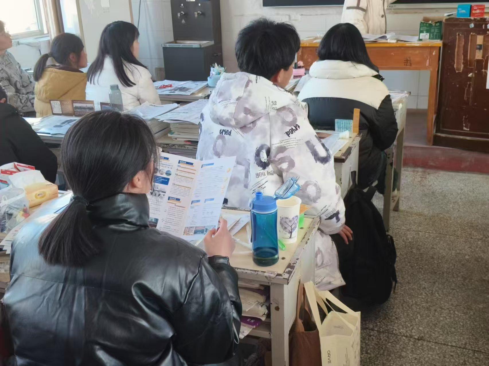一高学子仔细研读矿大宣传资料
