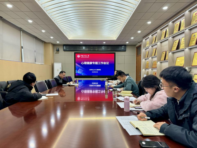在力土学院楼A220召开学生心理健康专题工作会议,全体专职辅导员参加会议。会议由院党委副书记纪承主持。