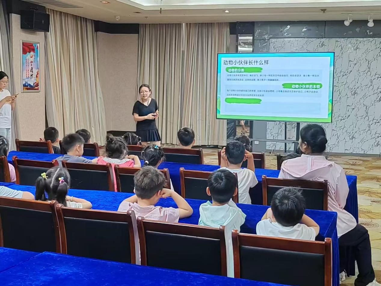 课堂上,各课程有序开展,成效显著。手工课以“纸间筑梦”为主题,陈世平同学带领孩子们制作纸飞机与千纸鹤。从纸张折叠的力学原理到造型设计,孩子们在动手实践中理解结构稳定性,现场20余架彩绘纸飞机承载童梦齐飞,场面十分热闹。自然认知课堂聚焦“生态与生活”,陈怡霏同学通过具象化的自然探究活动传递环保理念,通过探究“植物宝宝的秘密”、寻找“动物小伙伴们的家”、讲解自然和我们生活的关系,巧妙地将生态环保知识融入自然教育,让孩子们在课上感悟生态智慧和环保生活的重要性。趣味英语课程充分考虑3-6岁儿童的认知特点,邓雅文同学以“拯救水果王国”为主题设计教学内容,引导孩子们通过“看图说英语单词”、“英语猜谜”等互动环节,轻松掌握7种水果英文名称,进一步提升了自身的英语能力。