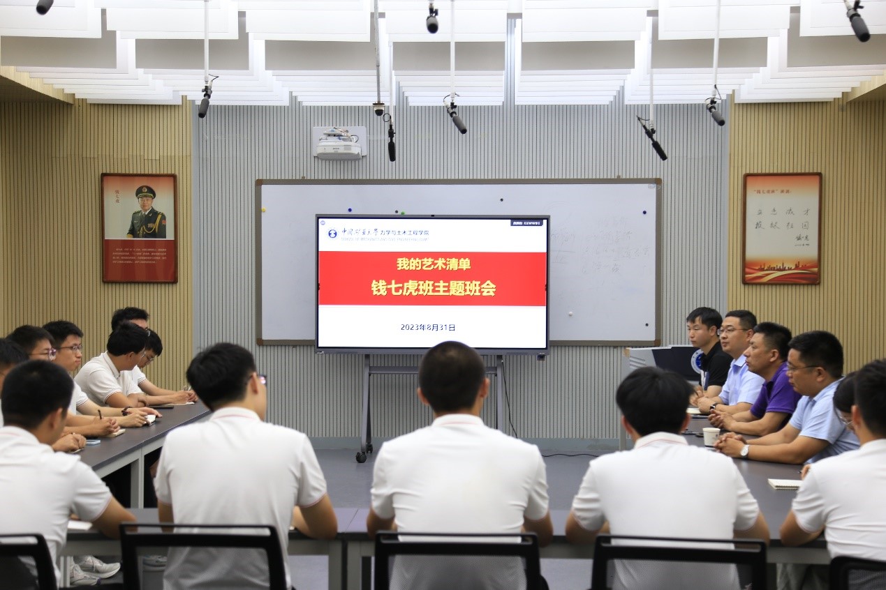“钱七虎班”在力土学院楼B201集中观看《我的艺术清单》钱七虎院士直播访谈节目,并开展主题班会学习讨论钱七虎院士无私报国的爱国主义精神和追求真理的科学家精神,“钱七虎班”班长王宇祺应邀参与节目现场录制。学院院长李树忱、学院党委副书记李智、“钱七虎班”班主任蔚立元、辅导员朱宁和“钱七虎班”全体同学参加主题班会。