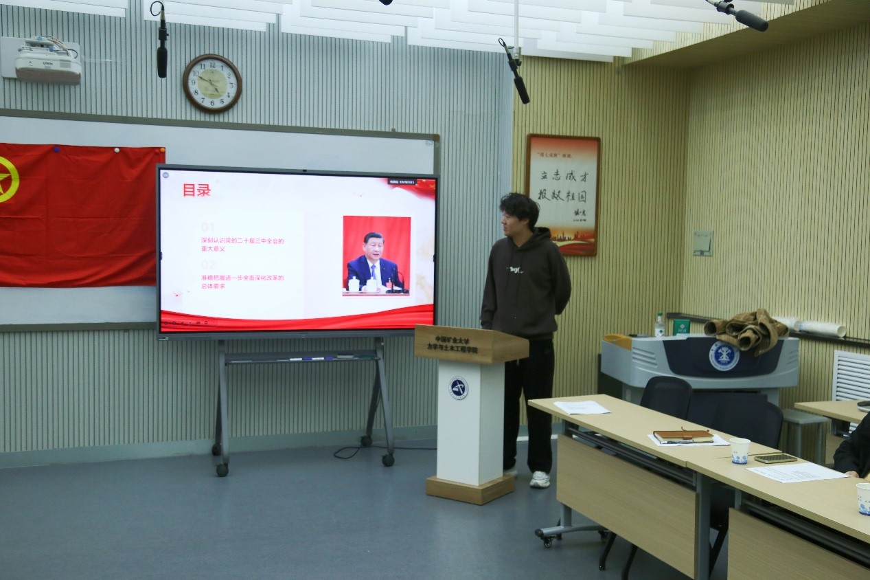 活动伊始,2023级“钱七虎班”团支书朱迅以钱七虎院士及王永志院士的卓越事迹为指引,带领“钱七虎班”的同学们开展了“走进先进楷模,凝聚爱国力量”的主题学习,两位院士不惧万难的拼搏精神与矢志不渝的爱国情怀,激励着每一位同学。2023级“钱七虎班”团支书陆睿带领全体同学深入学习贯彻党的二十届三中全会精神,他表示当代青年应矢志不渝跟党前行,紧跟时代潮流,肩负使命,为实现中华民族伟大复兴贡献力量。