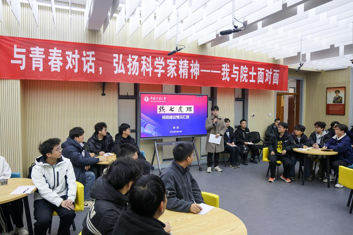 楼B201举行。钱七虎院士、校党委书记刘波出席班会,围绕“与青春对话,弘扬科学家精神”这一主题与钱七虎班同学面对面交流,共话青春使命与责任担当。