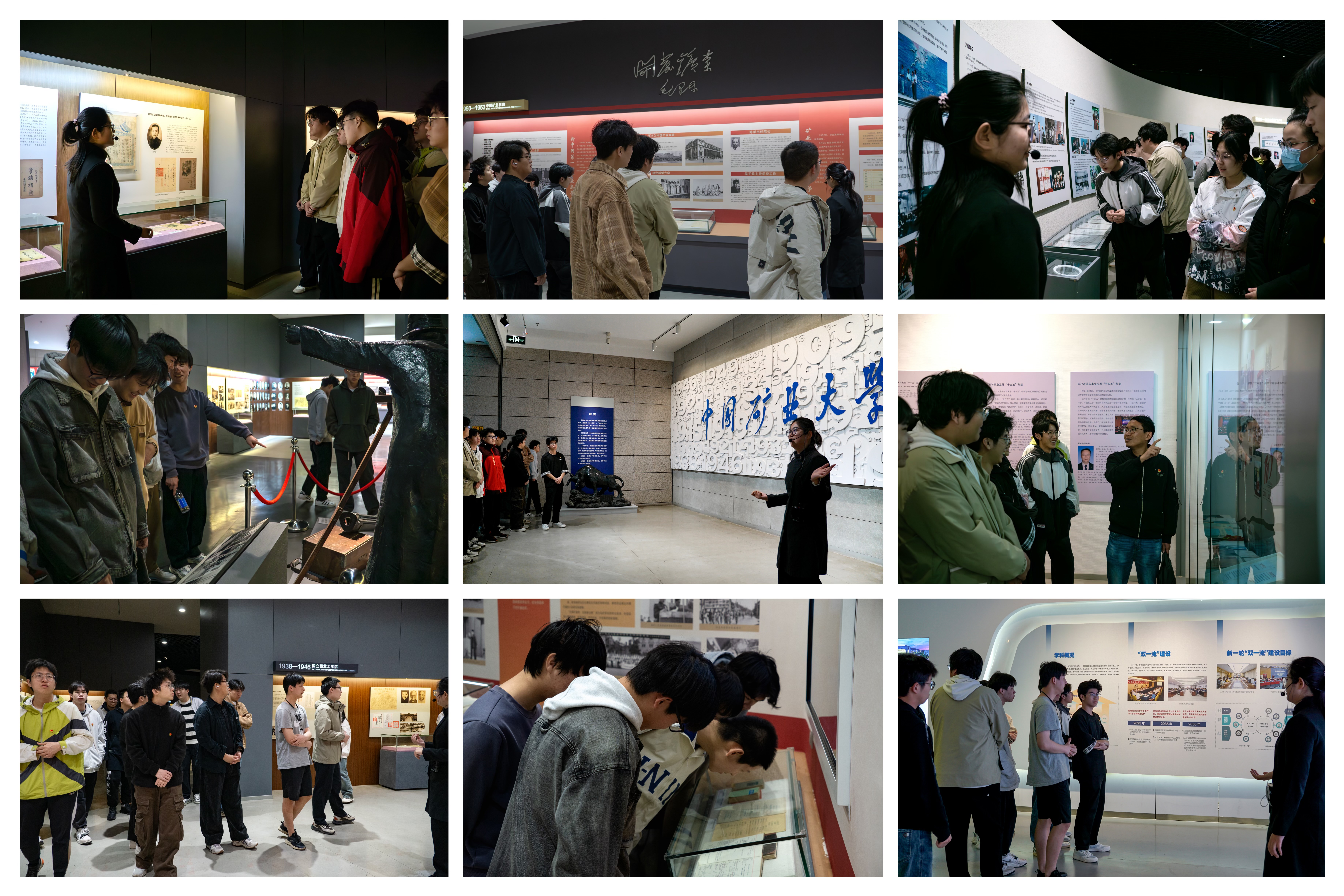 来到校史馆,同学们在讲解志愿者的引导和介绍下,有序步入各个展厅进行参观学习。一张张泛黄的老照片、一份份珍贵的旧档案、一件件充满岁月痕迹的实物展品、一段段铭刻峥嵘记忆的影像视频……这些历史资料都见证了学校在各个发展阶段所经历的风雨历程。学校的发展史就是一部与国家同向共进、与行业休戚与共、与地方同频共振的奋斗史,生动诠释了“自强不息、艰苦奋斗、追求卓越”的矿大精神,充分体现了自建校以来学校所传承的红色基因与坚定的使命担当。参观过程中,同学们被一代又一代努力践行“崇德尚学”校训的矿大人所深深感动,大家神情专注、频频驻足,认真聆听和观看,备受激励和鼓舞。
