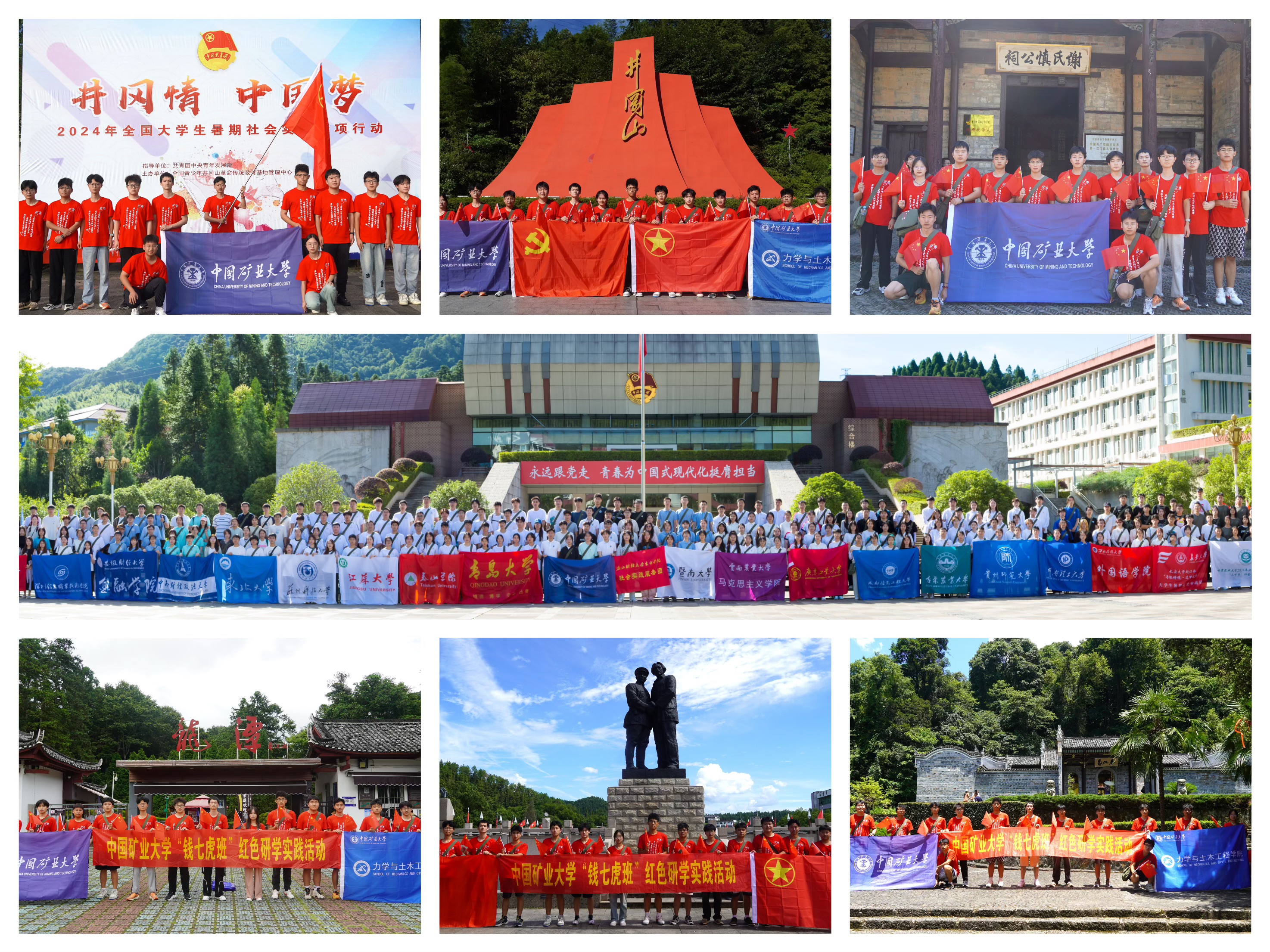 钱七虎班组建的“传承红色基因,弘扬英雄精神”井冈山之行学习实践团(以下简称“实践团”)于2024年7月15日至7月23日前往被誉为“中国革命的摇篮”和“中华人民共和国的奠基石”——井冈山,积极参加由共青团中央青年发展部、全国青少年井冈山革命传统教育基地管理中心联合组织开展的2024年“井冈情▪中国梦”全国大学生暑期社会实践专项行动(第三期)。实践团在为期九天的实践过程中扎实开展党史学习、红色教育、国情考察、社会观察、寻访体验、调查研究等活动,共同接受革命传统教育,一起开展社会实践调研。实践团的事迹受到中国青年网、三下乡官网等多家媒体关注报道。