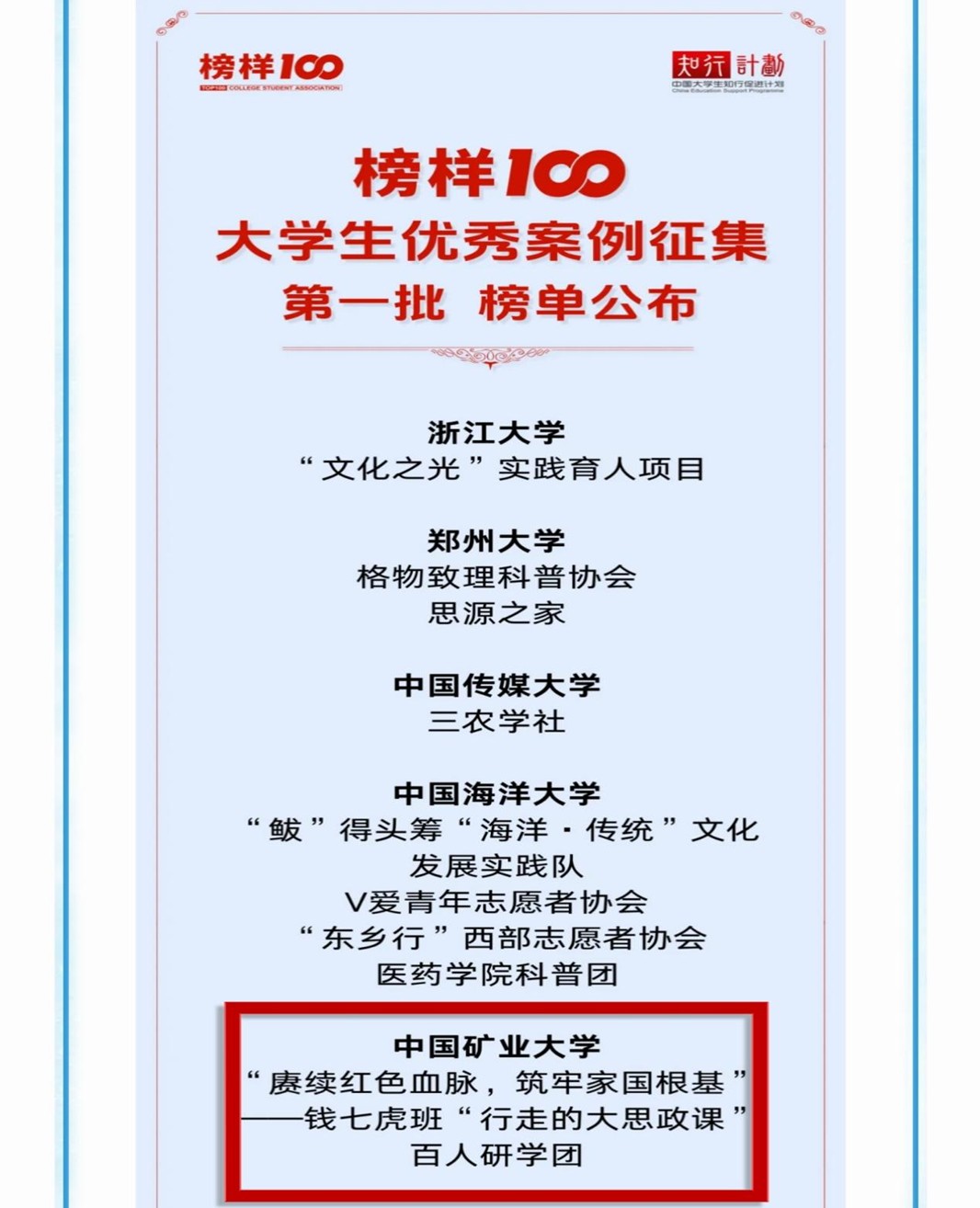 钱七虎班“行走的大思政课”百人研学团凭借卓越的集体建设、突出的实践成果与深厚的家国情怀,成功入选2025“榜样100”大学生优秀案例,成为全国高校中获此殊荣的杰出集体之一。